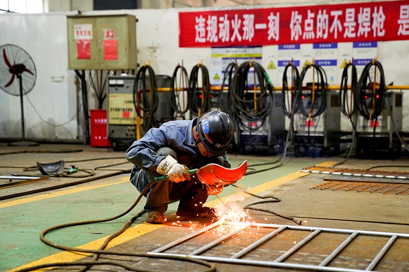 机修厂车间里,焊花与机床嗡鸣交织,工人佩戴防护装备专注加工配件,液压剪板机与焊接工具的精准操作,为设备稳定运行筑牢根基;机运地面环境整治现场,管材在管理人员指挥下有序码放,蓝色防水布覆盖的金属构件整齐排列,黄色警示线勾勒出安全作业区,干部职工们以细致维护守护生产环境整洁。