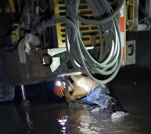 车辆维修持续了4个小时,王刚就在冰冷的积水中泡了4个小时。当他从车底爬出来时,双手和双脚已浸泡得麻木发白。