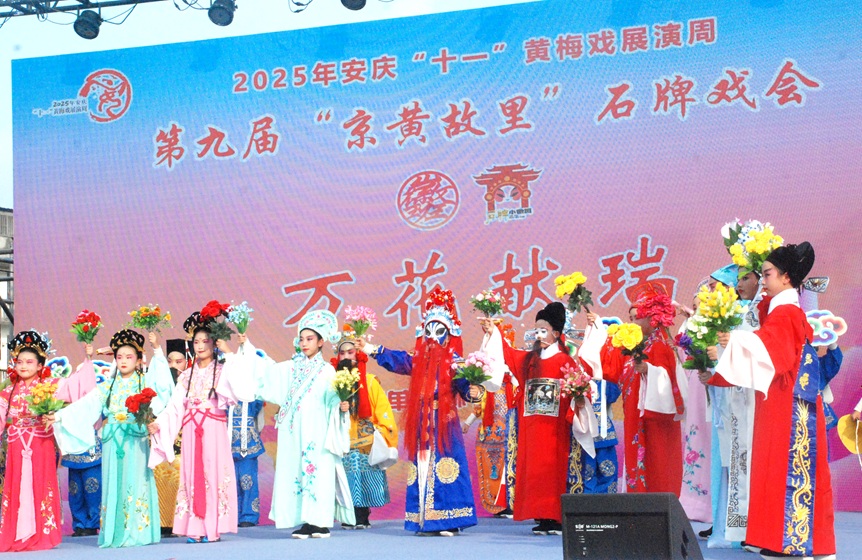 9月28日下午,怀宁县实验小学的学生正在表演徽剧《万花献瑞》。当日,以“戏韵江淮·文化惠民”为主题的第九届“石牌戏会”正式开锣,作为2025年安庆市“十一”黄梅戏展演周的重要组成部分之一,怀宁县将举办优秀传统剧目展演、百姓小舞台、黄梅戏票友擂台赛等系列活动,充分展现黄梅戏最新创作成果。