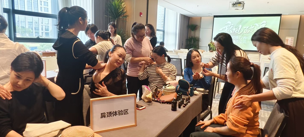 植物精油、芳香疗法、自主健康——这些领域对易与飞而言,都是全新的跨界探索。常言道“隔行如隔山”:飞虽是中华非遗保护的“一指禅”第六代传人,但精油芳疗的专业体系仍需要从零深耕;易深耕芳香行业4年多,却自认为仅学皮毛,尤其缺乏医学背景的他,在把握人体健康状况、精准用油方面仍需精进,因此每次理疗班他都坚持复训,只为强化用油与分享能力。