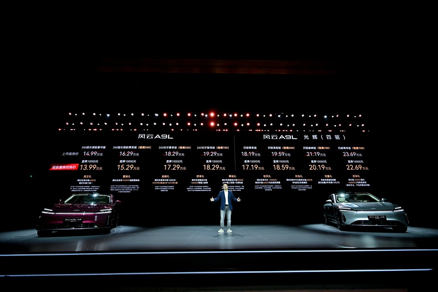 2025年11月15日,“进化”风云A9L光辉(四驱)全球上市发布会在重庆广阳岛国际会议中心隆重举行,本次上市共推出四款版型,正式售价为17.19万元起,共推出四个版本车型,其中四驱尊贵版售价17.19万、四驱高能版(猎鹰500)售价18.59万、四驱巅峰版(猎鹰700)售价20.19万、四驱尊享版(猎鹰700)售价22.69万。并同步推出“九大购车权益”,涵盖高定、置换、金融、舒享、尊驰、驭风、充电、流量、质保多重礼遇,为中国豪华汽车市场再次立下全新标杆。