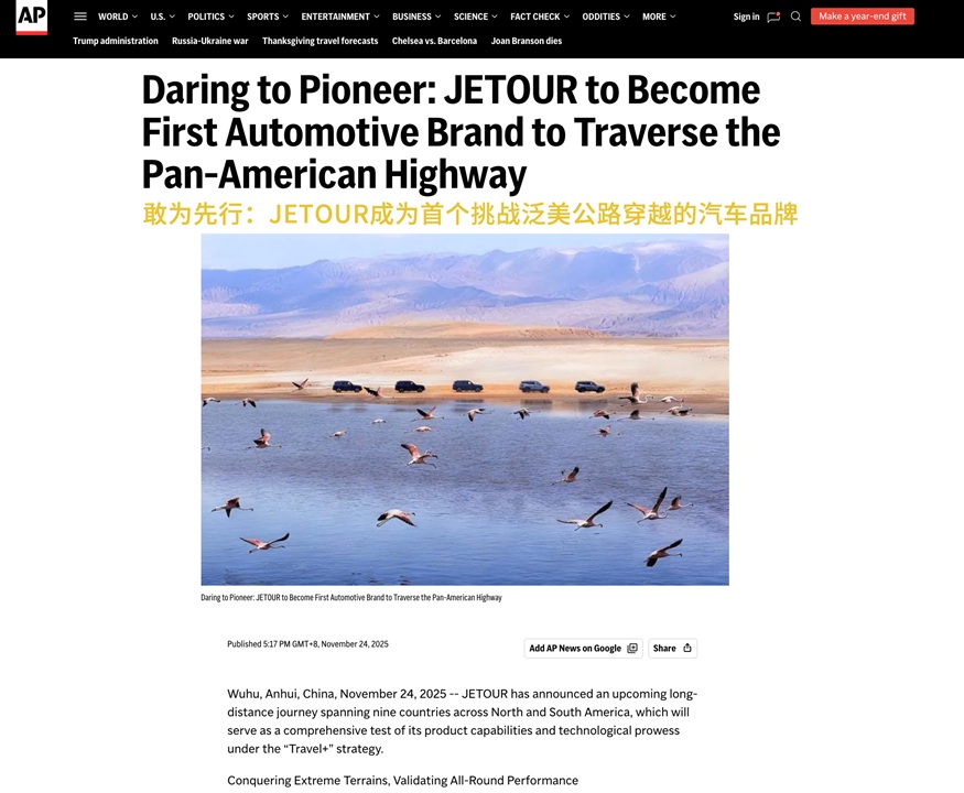 国际媒体《美联社》报道捷途“穿越泛美公路挑战”