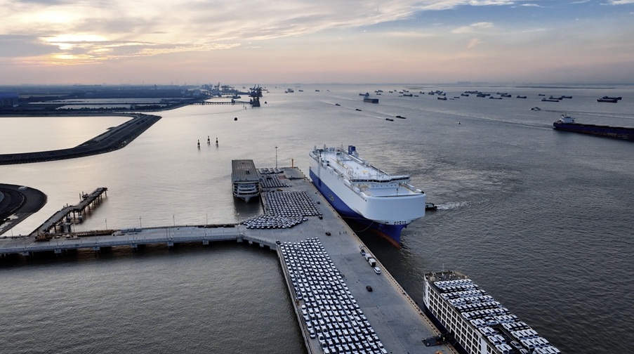 上海海通国际汽车码头,奇瑞出口车辆整装待发