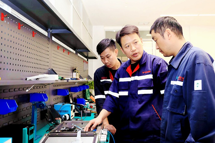 李虎劳模创新工作室,李虎(图右二)为徒弟进行教学