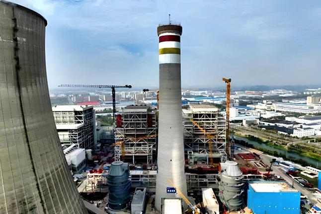安庆三期烟囱外筒壁顺利完成封顶浇筑