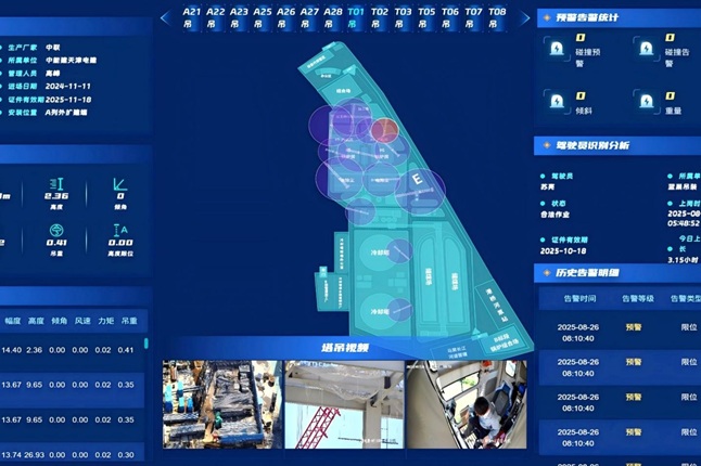 机械设备推行“一机一码”电子台账,检验到期前30天自动预警,塔吊、升降机等关键设备落实“无视频不作业”,实时监测核心参数并预警疲劳作业。