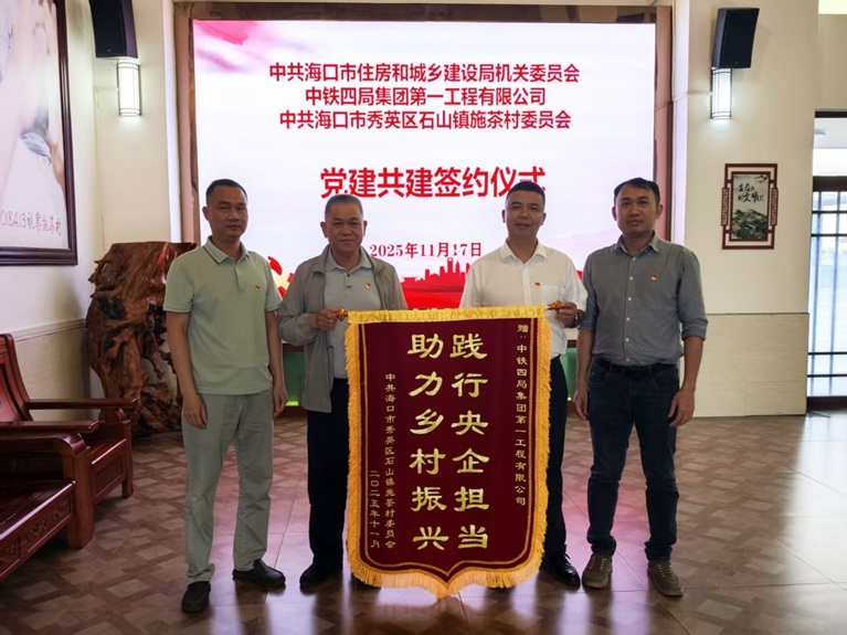 为了全面落实新时代党的建设总要求,以高质量党建引领高质量发展,11月17日,中铁四局一公司海口区域经理部党支部联合海口市住房和城乡建设局机关委员会、海口市秀英区石山镇施茶村委员会开展党建共建签约仪式暨主题党日活动。