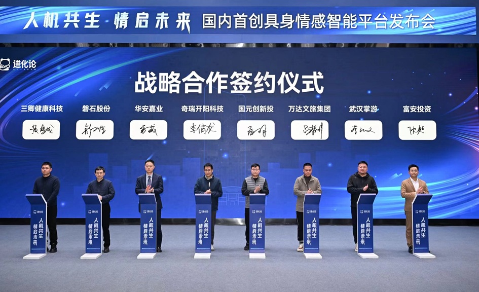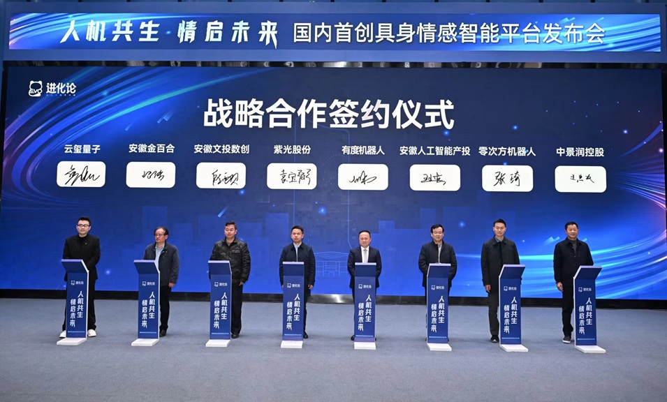 产业协同是技术产业化的关键支撑。签约仪式上,安徽进化论科技与紫光股份、奇瑞开阳科技、万达文旅集团万星缘玩具等16家企业达成意向合作并签约,标志着具身情感智能技术在医疗、数字创意、智能汽车、机器人等领域的产业化应用迈出关键一步。