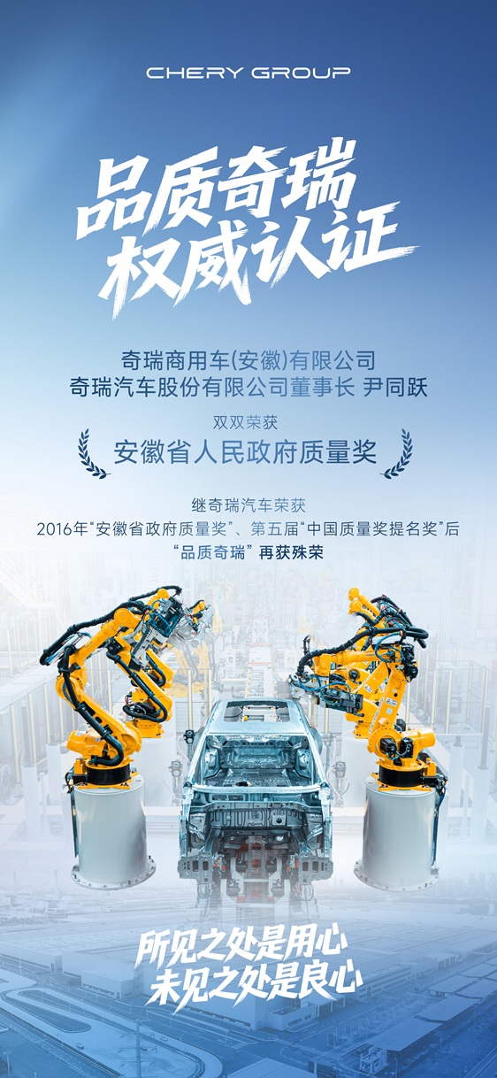 奇瑞商用车公司、奇瑞尹同跃同志双双荣获“安徽省政府质量奖”