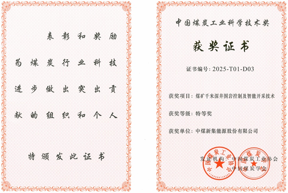 煤矿千米深井围岩控制及智能开采技术获评特等奖