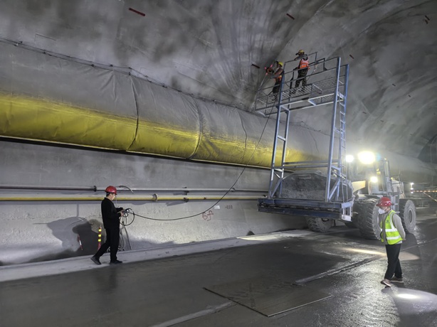 检测人员在西成铁路甘青隧道进口使用地质雷达法检测隧道二衬