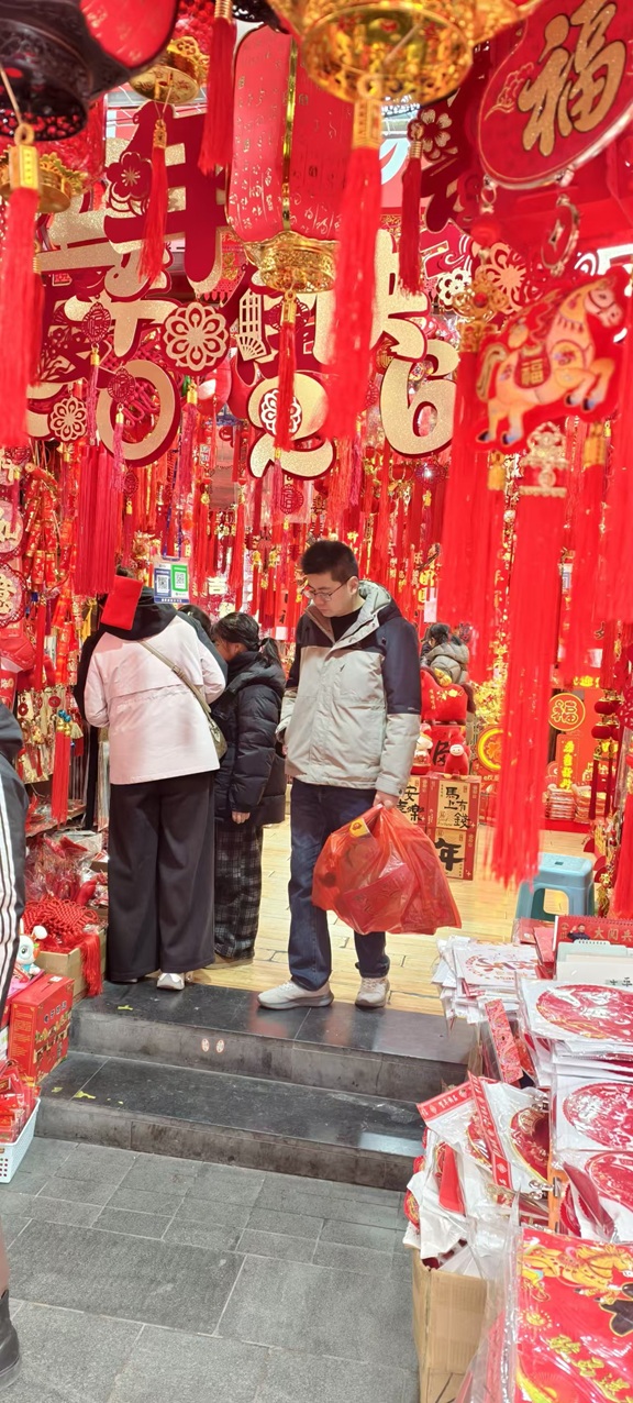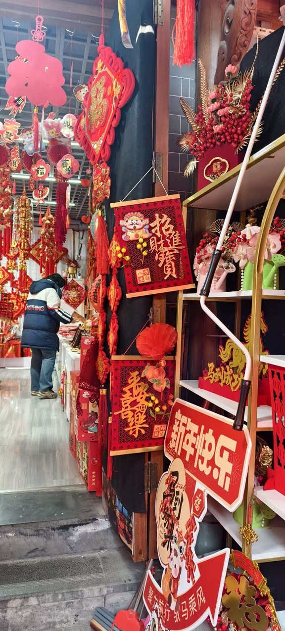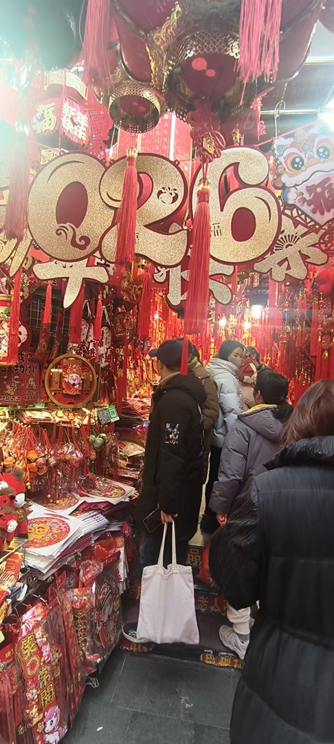 虽然寒意未消,红彤彤的春联、福字、灯笼、中国结与马年主题挂件层层叠叠、沿街铺展,汇成一片热烈奔涌的红色海洋,将老城街巷包裹得暖意融融。往来市民携家带口、精心挑选,在烟火气里置办年货、寄托祈愿。对合肥人而言,逛一趟城隍庙年货街,早已是刻在城市记忆里的春节仪式感,是辞旧迎新不可或缺的市井温情。