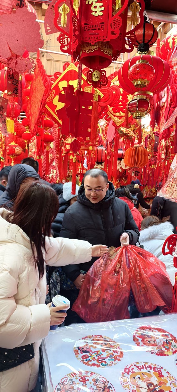 人间烟火处,年味正浓时。从晨光微亮到日暮降临,城隍庙年货街始终人潮不息、红火如常。一副春联、一盏灯笼、一句祝福,背后是千家万户对团圆美满的向往,是城市生生不息的烟火气息,更是新时代百姓安居乐业、幸福生活的生动写照。红红火火的市集、熙熙攘攘的人群、笑意盈盈的脸庞,共同勾勒出合肥新春前夕最温暖、最鲜活的民生图景,也让传统年俗在市井烟火中代代相传、历久弥新。
