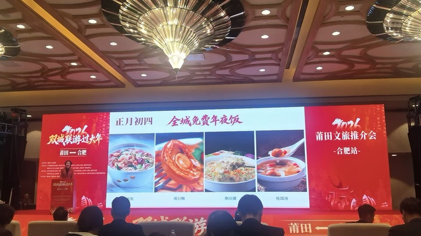2月6日,莆田·合肥“双城联游过大年”文旅推介会在合肥隆重举行。此次推介会旨在深化闽皖两地文旅交流合作,落实习近平总书记关于“把文化旅游业培育成为支柱产业”的重要指示要求,搭建莆田与合肥文旅联动桥梁,向两地市民发起新春旅游邀约,共拓新春文旅新赛道,开启双城双向奔赴、合作共赢的文旅新篇章。