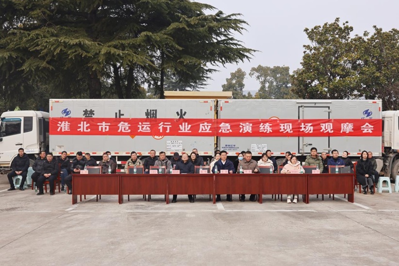 2月5日上午,淮北市危运行业安全事故应急演练在雷鸣科化运输公司举行。淮北市交通运输局党组成员、副局长黄徽,市道路运输管理服务中心党委书记、主任徐高峰参加演练。全市39家危运、客运、货运、出租汽车及公交企业相关负责人现场观摩。