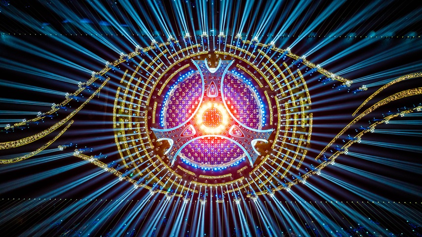 主舞台上,“天地矩阵”震撼亮相,地面数百人阵列光影流转。