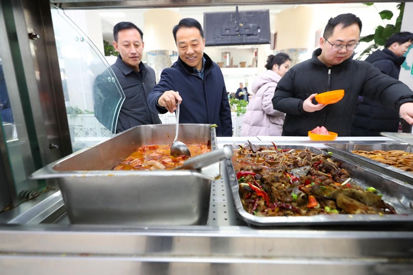 作者:胡云峰 吃得怎么样,家属小孩来没来一起过年?2月16日,大年三十中午,皖北煤电集团智能公司党委书记、董事长徐辉在综合办公室负责人陪同下,深入职工食堂,亲切看望慰问坚守岗位职工,与用餐职工话家常,聊愿望,共同展望新年好年景! 过年了,今天中午的菜品特别丰富,我们吃得很满意!老家的团年饭开始动筷,职工们远在千里之外也吃得不亦乐乎。徐辉面带