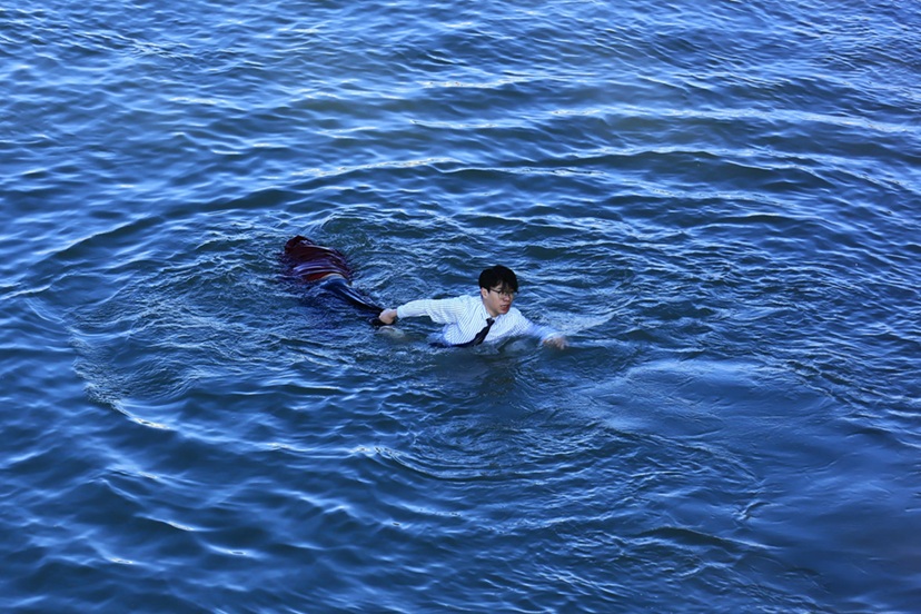 上岸后的谈磊浑身湿透、体力透支,却第一时间叮嘱众人照料伤者,直至民警与急救人员赶到,确认女子生命无碍,才与朋友悄然离去。