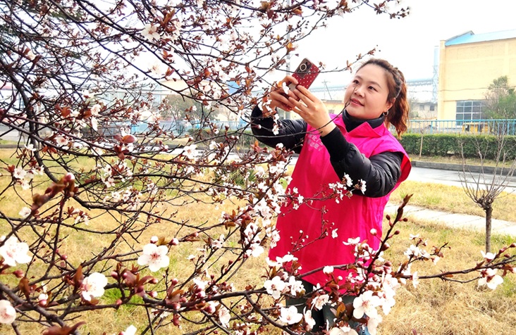 3月20日,安徽淮北矿业集团朱仙庄矿内,一名职工“拍客”正举着手机,定格枝头怒放的紫叶李。近年来,该矿持续加码矿山生态治理,因地制宜栽种梅花、紫叶李、海棠等花木,气温回暖后,各色春花次第绽放,不仅让职工有了舒适的工作生活环境,更吸引了大批“拍客”前来踏青采风、定格春日美景。
