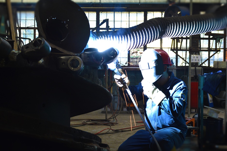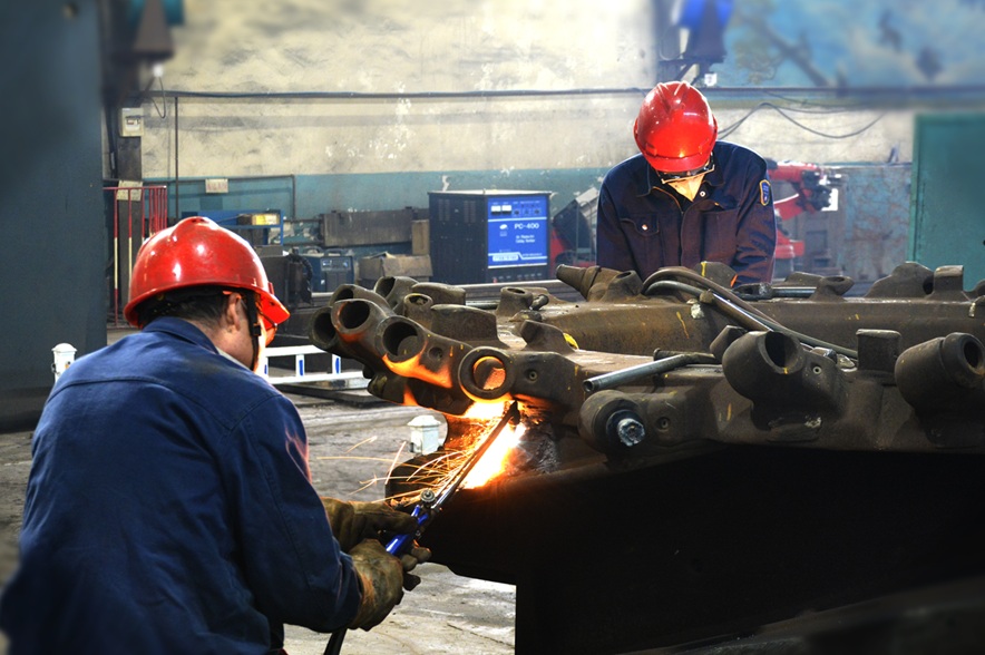 每年一进入夏季,铆焊厂房中就会热得像个大蒸笼。行车在作业职工的头顶“轰隆隆”的忙碌不停,地面上各个工位闪烁着焊接的弧光、飞溅着火焰切割的火花。焊接与切割作业产生的热量烘烤着作业职工和周围的物品,空气中弥漫着焊烟的味道。为紧急抢修一批又一批的支架结构件、三机槽体、采煤机滚筒,班组职工们穿着厚厚的工装和劳保用品与时间赛跑,和设备“角力”。