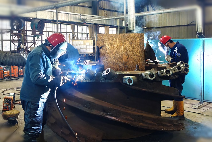 “焊接这活儿,看起来像粗活,实际上比绣花还要细致。”宋师傅移开防护面罩,露出一张被弧光烤得微红的脸,额头上的汗珠顺着脸颊滑落下来。“齿座的焊接非常讲究,位置、角度都要非常精准,稍有偏差都会影响滚筒在井下的使用”他指着方向不一的齿座说“这些家伙就是采煤机的‘牙齿’,啃得全是煤块、矸石一类的‘硬菜’,如果焊接质量不达标,就会给生产一线带来很大的麻烦”