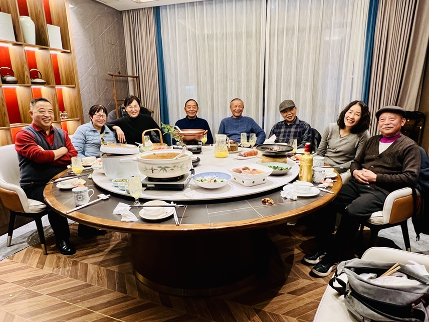 2025年12月23日,一个普通的冬日傍晚。郑万全与柳友伦、翟红、储斌等十余位好友相聚,席间合影留念。席散人归,夜色渐浓,他提笔写下一组关于巢湖的诗作,从七时二十八分到八时三十八分,短短一个多小时,三首小诗一气呵成。