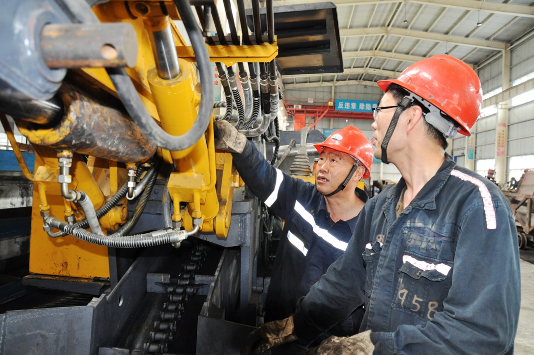4月11日,安徽淮北矿业集团朱仙庄矿修护预备区维修岗位师傅张工英(左)正利用班组小课堂向徒弟乔治军手把手传授巷修机故障快速排查的实操绝活。该矿通过发掘各岗位技术能手与特色实操绝技。依托绝活展示、师带徒结对、班组小课教学等多元载体,推动独门技艺公开化、实操经验共享化、高端技能普及化,最大限度发挥技术能手的辐射带动作用,为矿井高质量发展锻造过