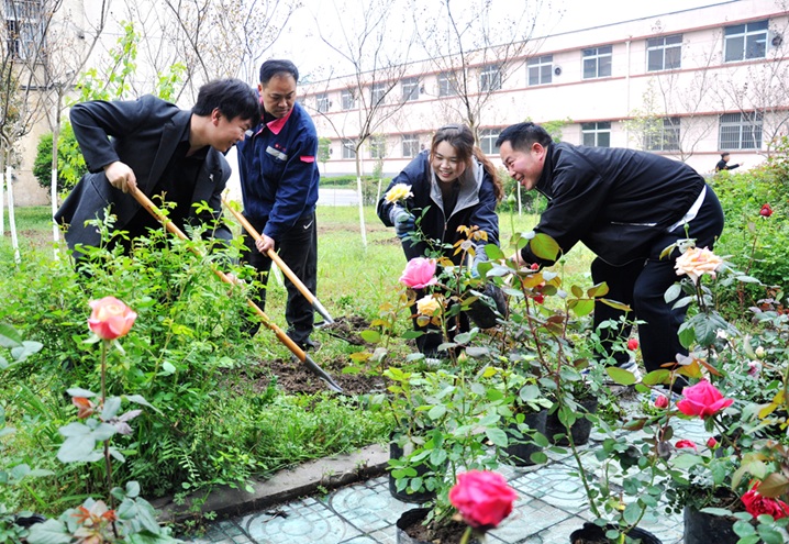4月9日,安徽淮北矿业集团朱仙庄矿团员青年们正在种植花木。当日,该矿组织团员青年开展春日植绿扮靓矿山主题种花植树活动,以实际行动为矿山添绿增彩。 王道玉 / 摄影报道