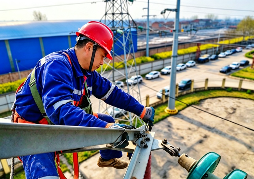 杆塔上,他们细化检修措施,严守安全规范,逐段排查线路隐患——从绝缘子到金具,从线距到紧固程度,不放过任何细节。红色安全帽是责任的颜色,更是安全的底色。登杆职工用严谨和汗水,全力保障矿井供电稳定,为雨季安全生产筑牢坚实屏障。