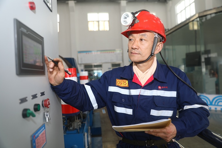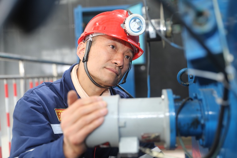 4月中旬以来,淮北矿业集团袁店二矿进一步压紧压实岗位包机责任,认真对照要害车间、重点设备检修清单,全面加强提升系统检修力度,确保机电设备完好安全运转。图为,该矿保运一区职工孙虎民正在检修主提升系统。