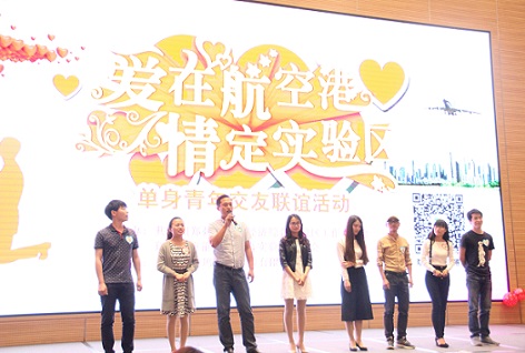为努力解决单身青年员工婚恋问题,不断推进幸福项目建设,5月13日,中铁四局郑州航空港棚户区改造项目经理部(建筑公司代局指)通过积极联系,派员参加了由郑州航空港综合实验区总工会和团委组织开展的“爱在航空港、情定实验区”单身青年交友联谊活动,积极为单身青年员工搭建寻觅知音、成家立业的交友平台。图为,经理部员工上台参与游戏互动。