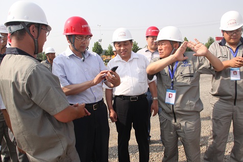 6月12日下午,郑万铁路河南公司总经理马春山、副总经理马明正一行多人在中铁四局副总经理刘勃和一公司副总经理兼郑万项目部项目经理范伟的陪同下,深入我部对现场标准化施工、施工工艺等进行检查指导。检查组一行现场检查了郑万四分部第一墩及沿线施工现场、三分部CFG桩基现场,现场整齐划一的施工便道、整洁的施工现场,持续施工现场,墩身上随时可扫描的二维码,已形成的规模开工和标准化施工,让检查组对我部“四化”和规模开工给予了高度评价和肯定。