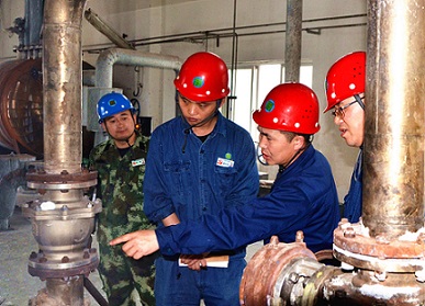 5月11日上午,该公司组织人员在氯碱厂烧碱车间进行安全监督检查