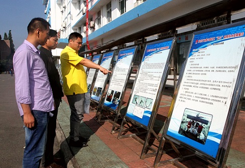 该矿职工在观看展览.