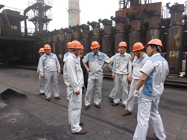 该公司第一检查组人员在焦炉炉顶现场讨论整改方案