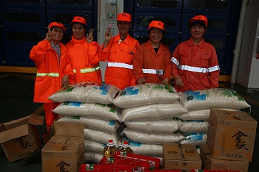 【夏漫红合肥报道】“宁愿一人脏,换来万人洁”,环卫工人是“城市美容师”。七一前夕,安徽金工电力集团为合肥市瑶海区城管局60多名一线困难的环卫工人送去价值3万多元大米、面粉、色拉油等。每位环卫工人都收到了一份特殊的礼物。